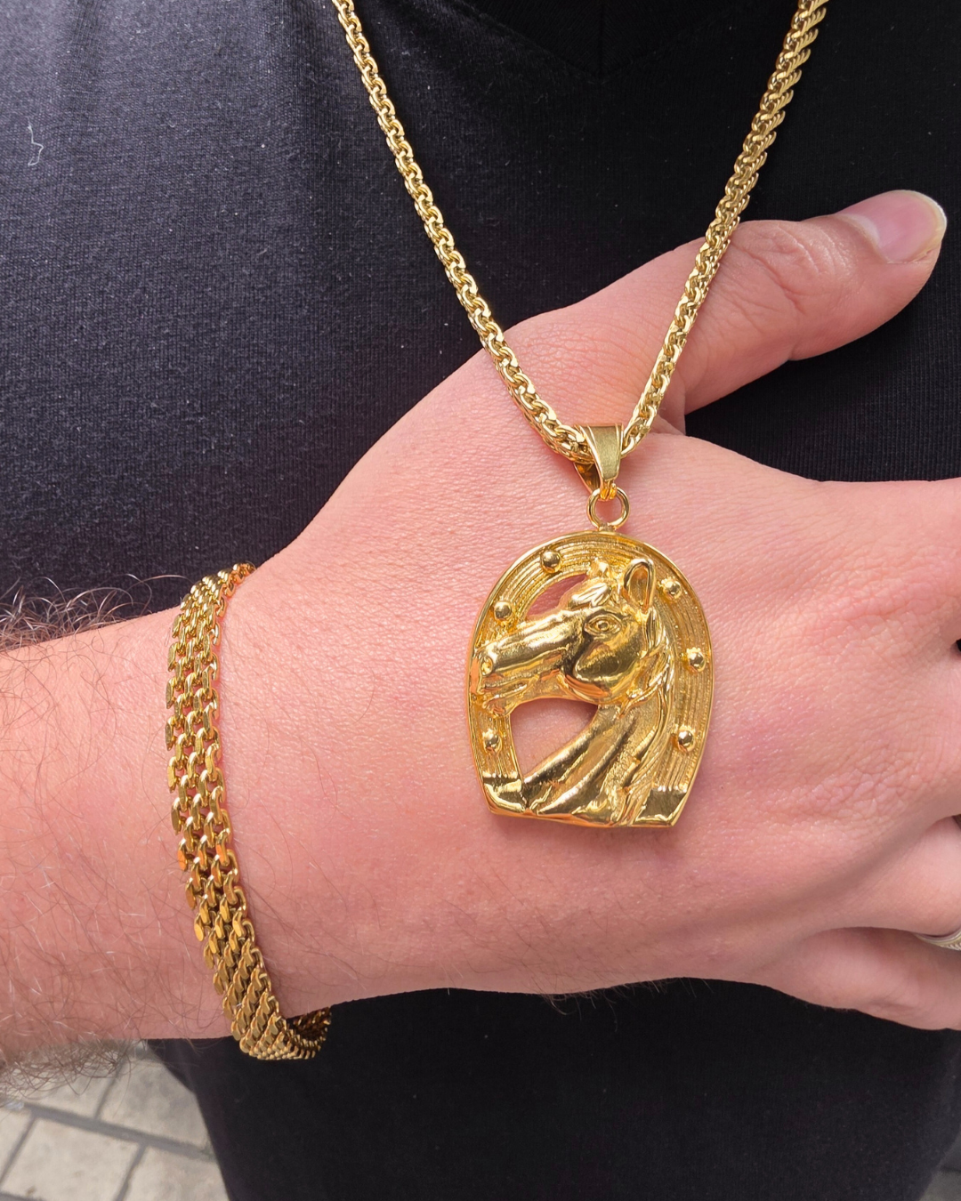 Luce la poderosa Cadena Chinesca + Pulsera + Dije Caballo con Herradura 🐎🍀