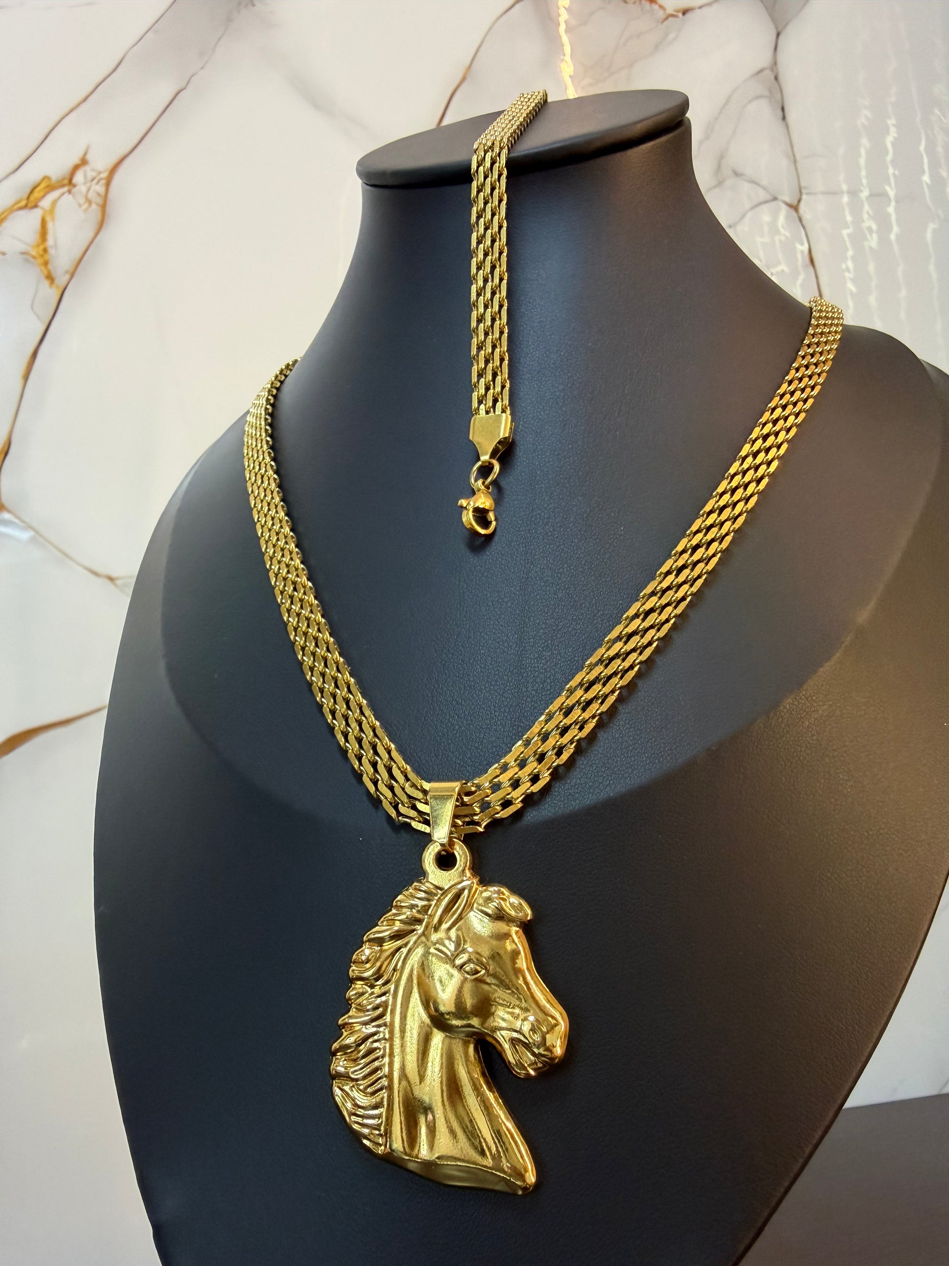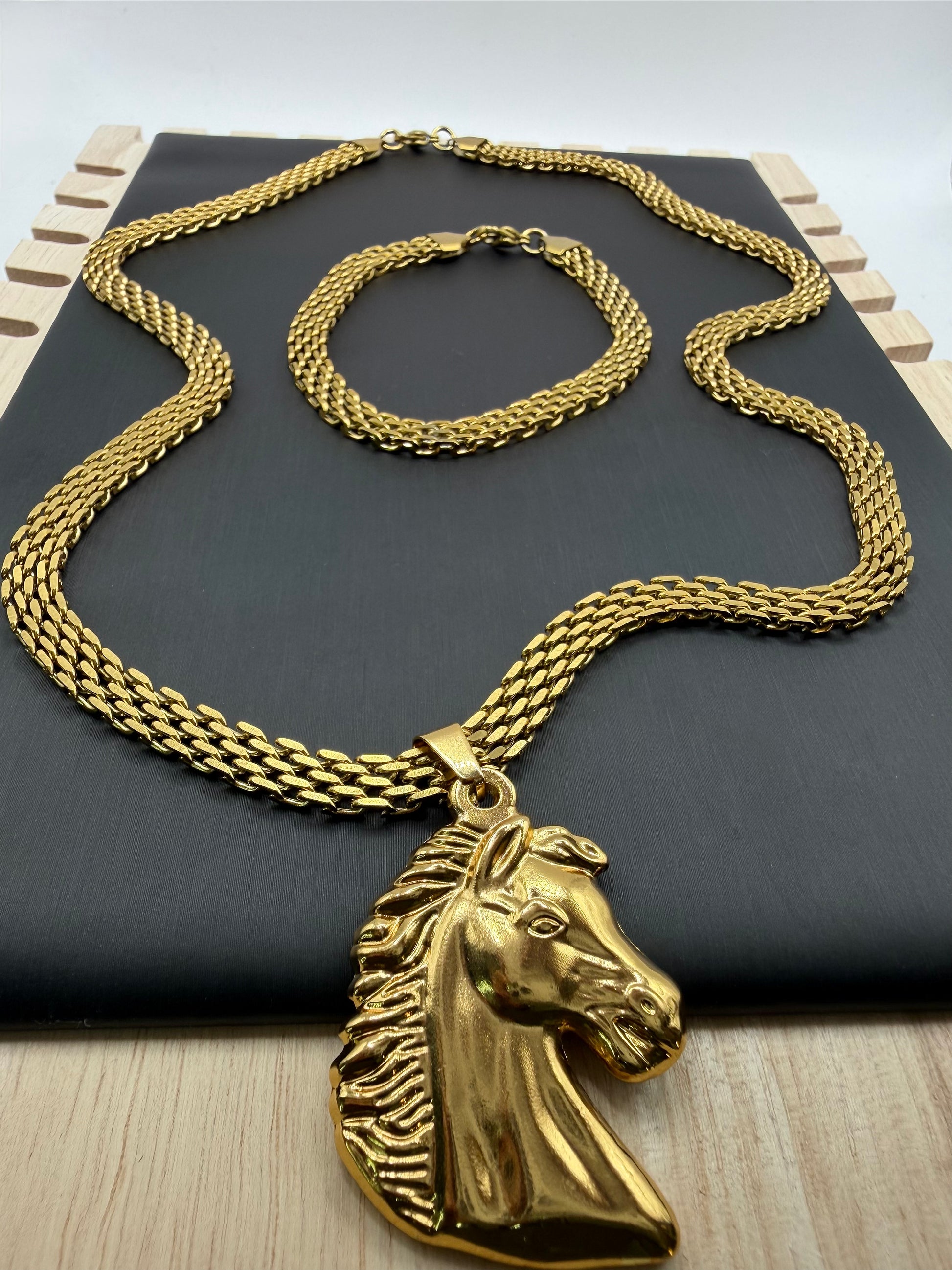 Cadena y Pulsera Chinesca + Caballo Sólido
