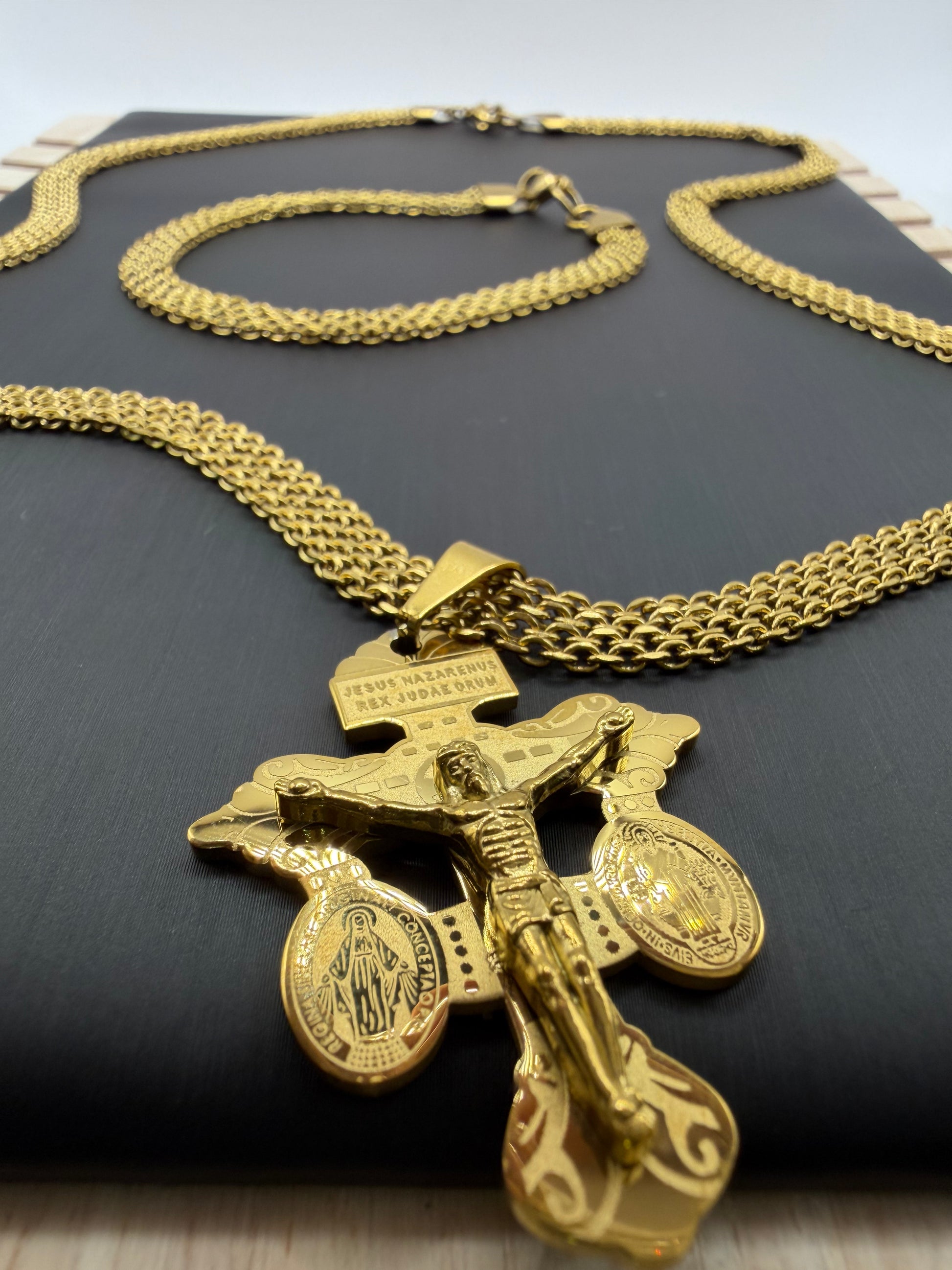 Cadena y Pulsera Tejido Chino + Cruz del Perdón